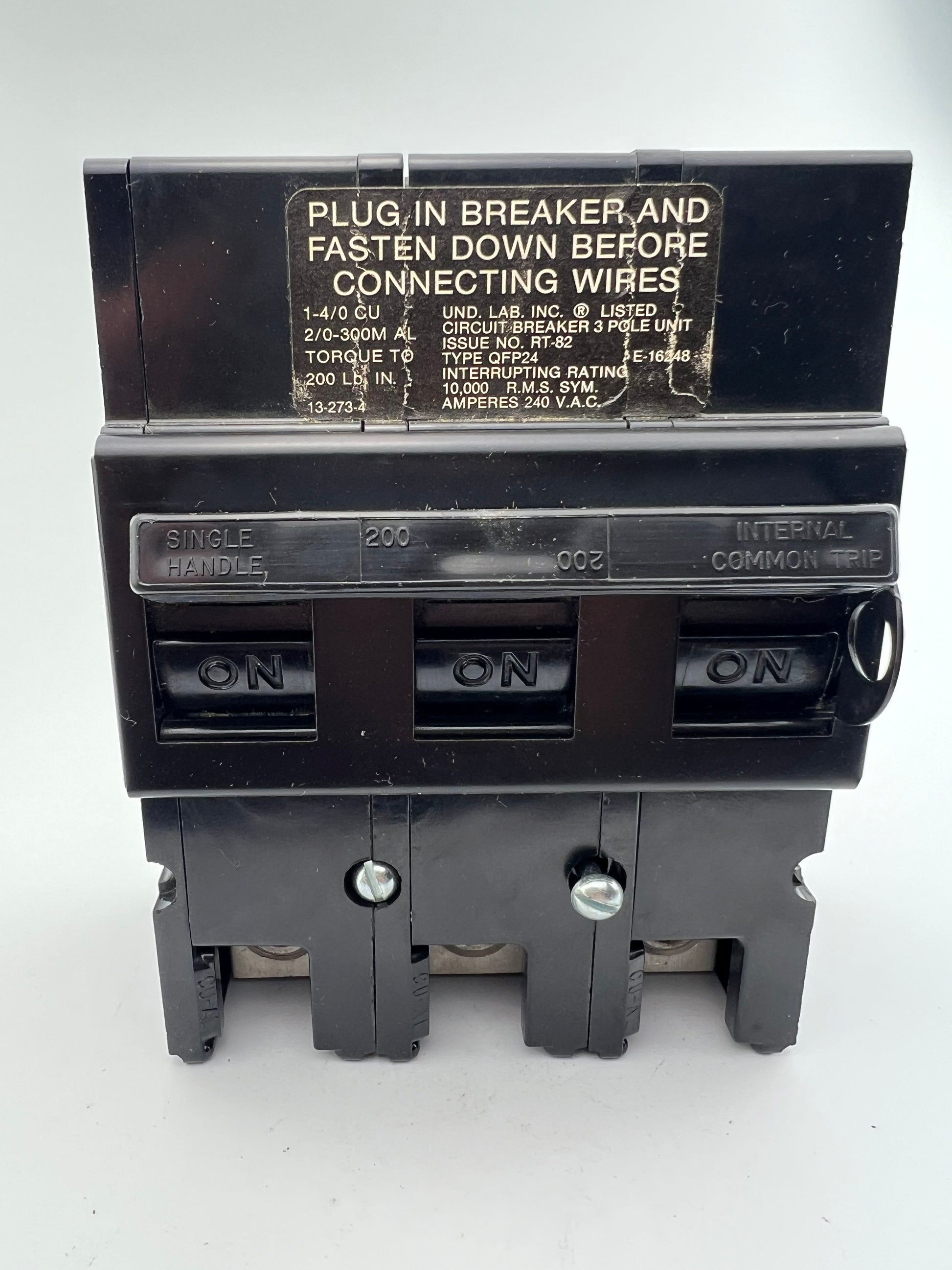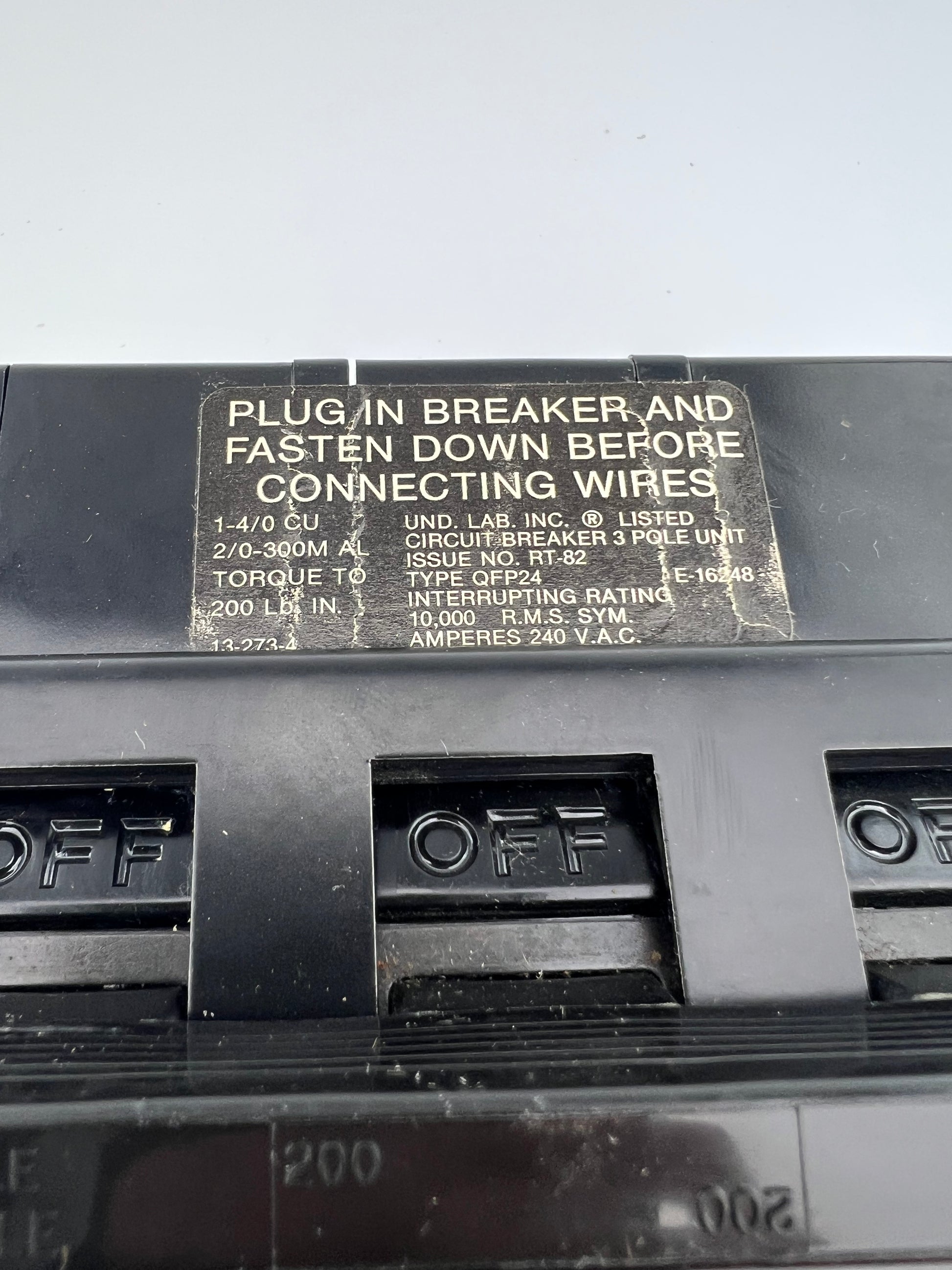 - Items have been cleaned and inspected for cracks, chips, or burns β any issues will be noted here Β (Photos Indicate a 125 amp breaker but it's actually a 200 Amp 3 Pole QFP24 Plug On same Style and Condition as the one in the photos.)